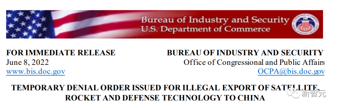 但是,根据6月7日的命令文件的内容,一家美国航空航天和全球国防企业于2020年2月通知商务部,有第三方供应商未经授权出口受管制的卫星技术。